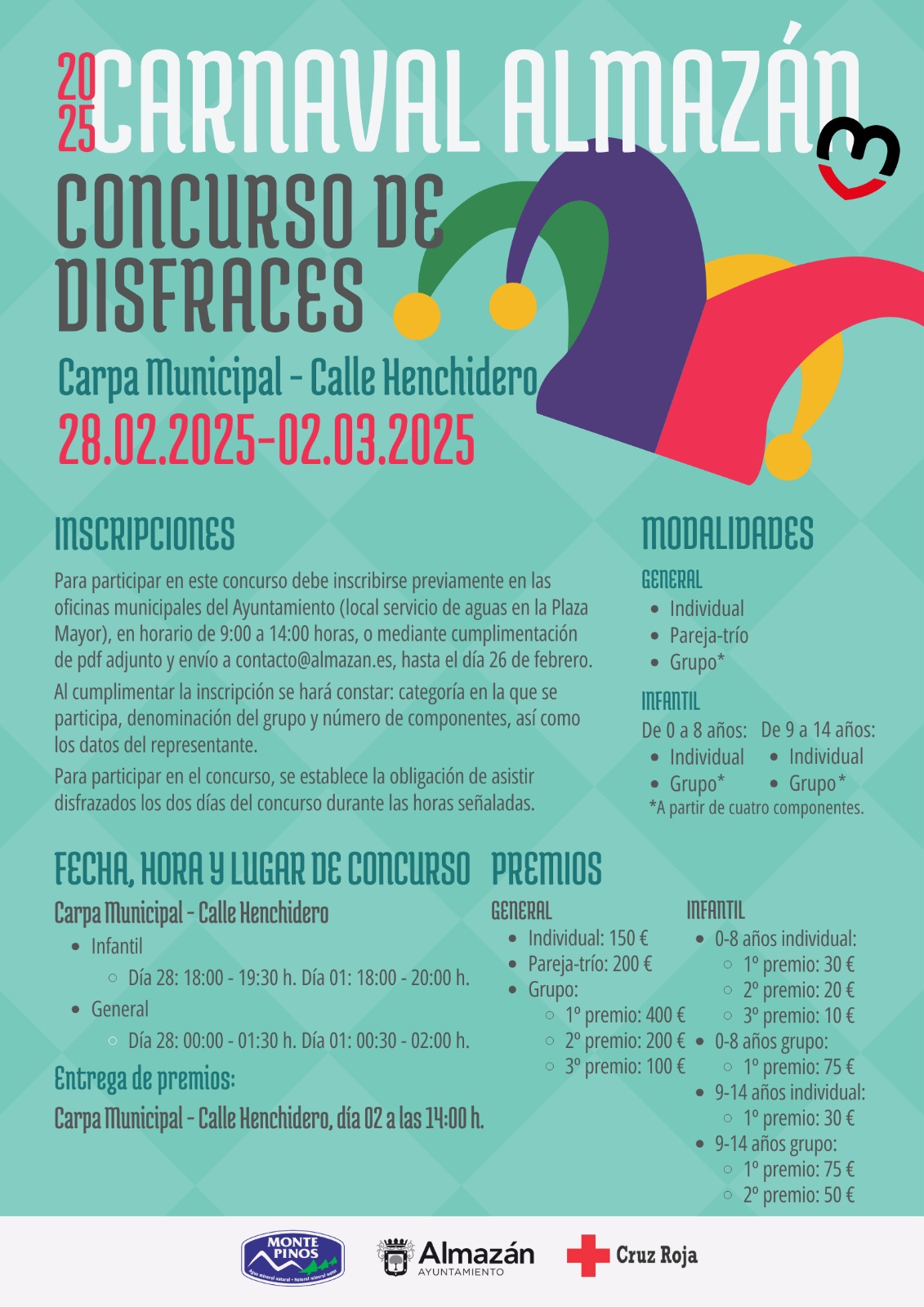 Inscripciones en las oficinas municipales hasta el 26 de febrero de 9 a 14 h. o enviando la inscripción a contacto@almazan.es (puedes descargar la inscripción aquí)