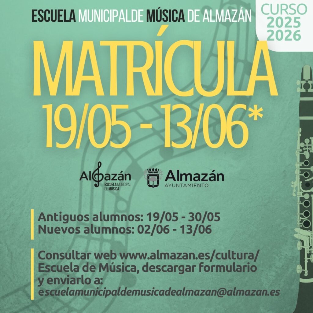 Correo electrónico: escuelamunicipaldemusicadealmazan@almazan.es