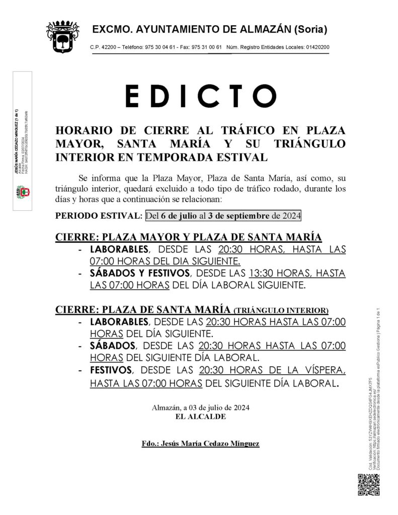 | Noticias | Horario de cierre al tráfico en Plaza Mayor, Santa María y su triángulo interior en la temporada estival