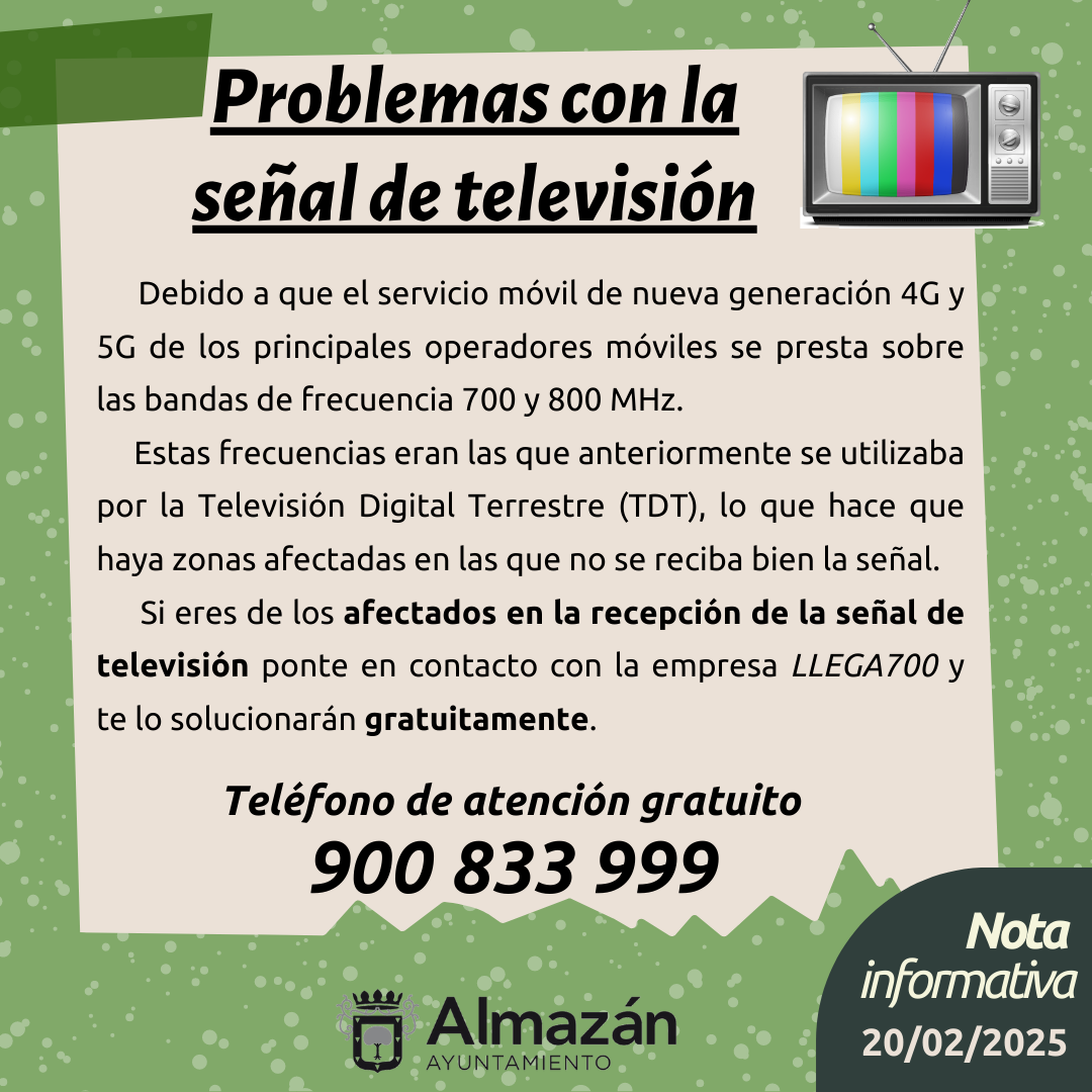 Si eres de los afectados en la recepción de la señal de televisión, ponte en contacto con la empresa LLEGA700 y te lo solucionarán gratuitamente.